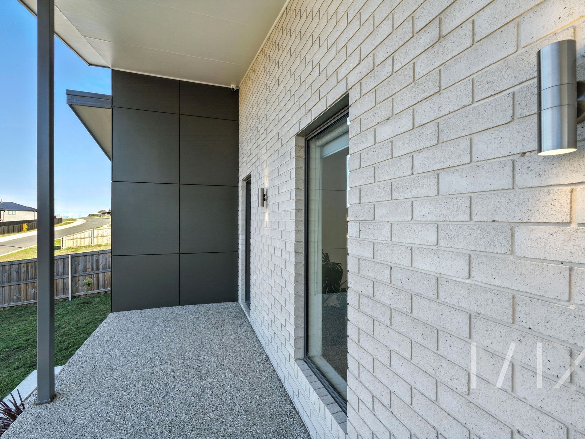 The striking facade features a mix of brick and cement sheet cladding, complemented by a timber-slatted fence, sliding gate, and an exposed aggregate concrete driveway. Every detail has been considered to create a welcoming and low-maintenance lifestyle.