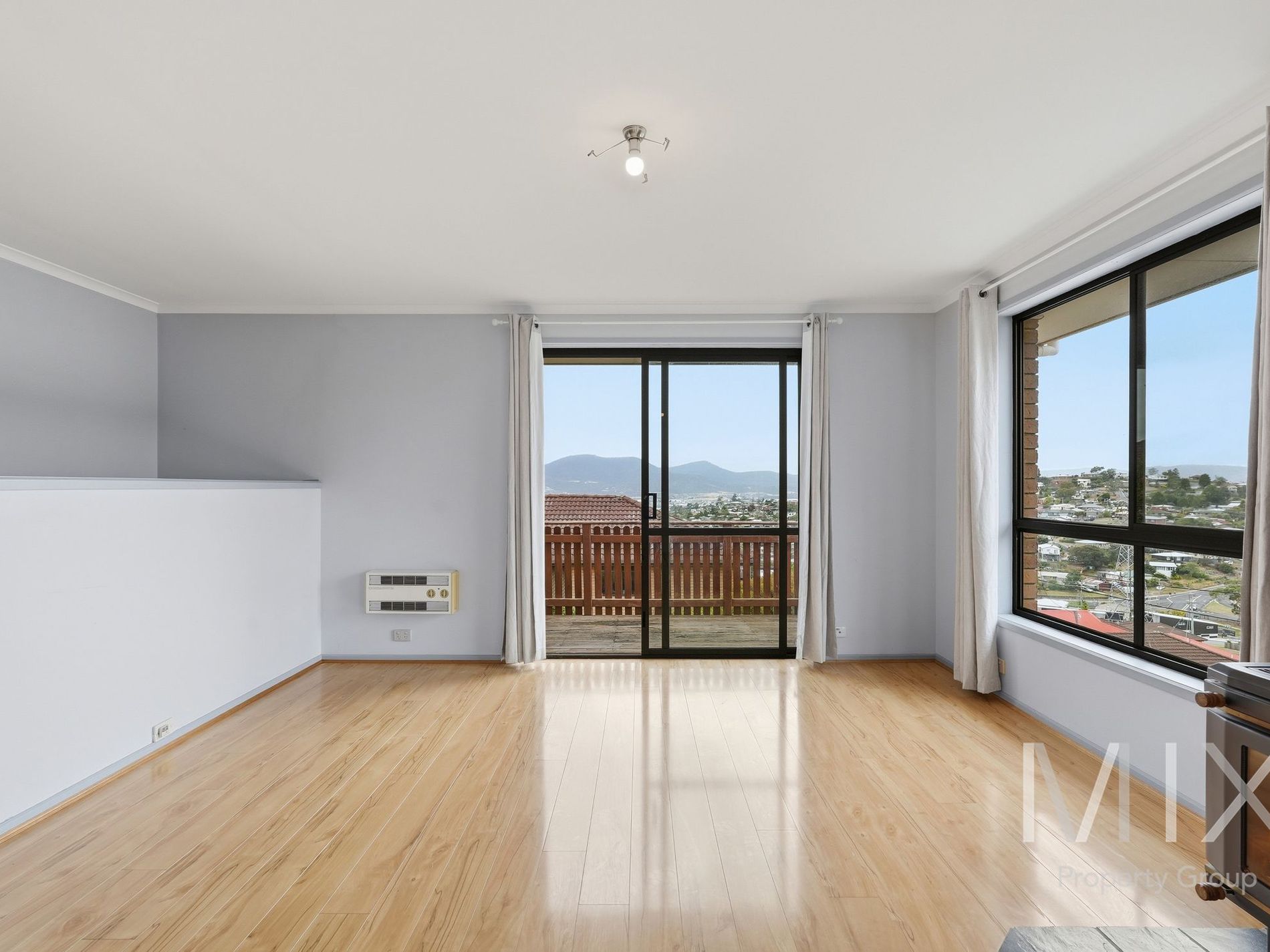 Entry to the home is via the front door, where timber stairs lead up to the living space of the home. The light-filled open-plan living area is welcoming and spacious, enhanced by large windows that capture the outlook and natural light. A glass sliding door opens onto a private balcony where you can enjoy panoramic views taking in the River Derwent, MyState Bank Arena and the surrounding suburb of Glenorchy.