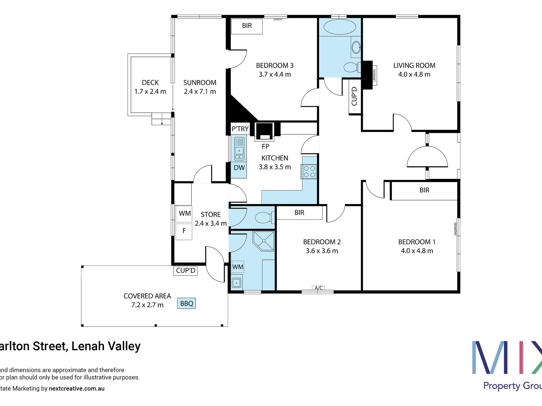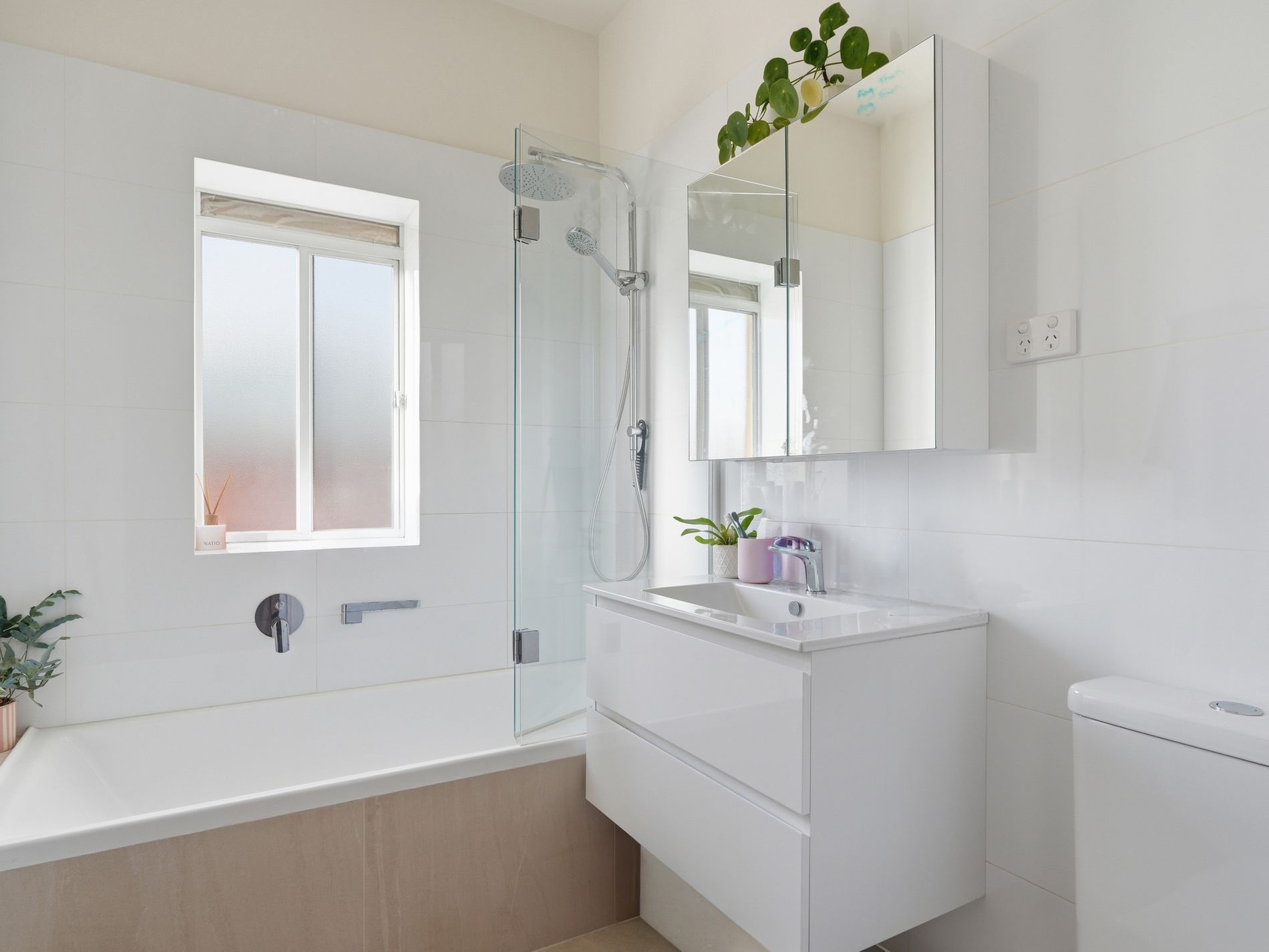 All three bedrooms are well-sized and include built-in wardrobes along with individual heating and cooling, ensuring comfort throughout the seasons. The main bathroom has been tastefully renovated and features a shower over bath, vanity and toilet, while the added bonus of a second toilet and additional shower provides extra convenience for busy households.
