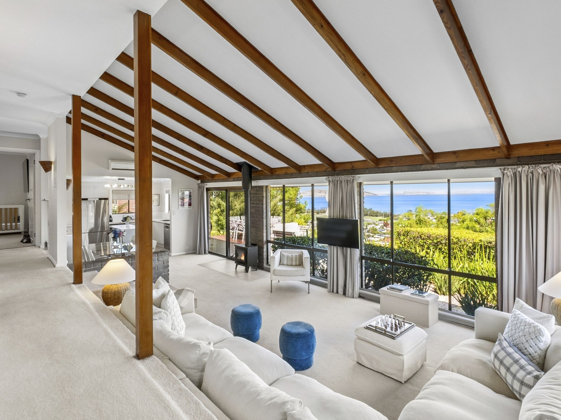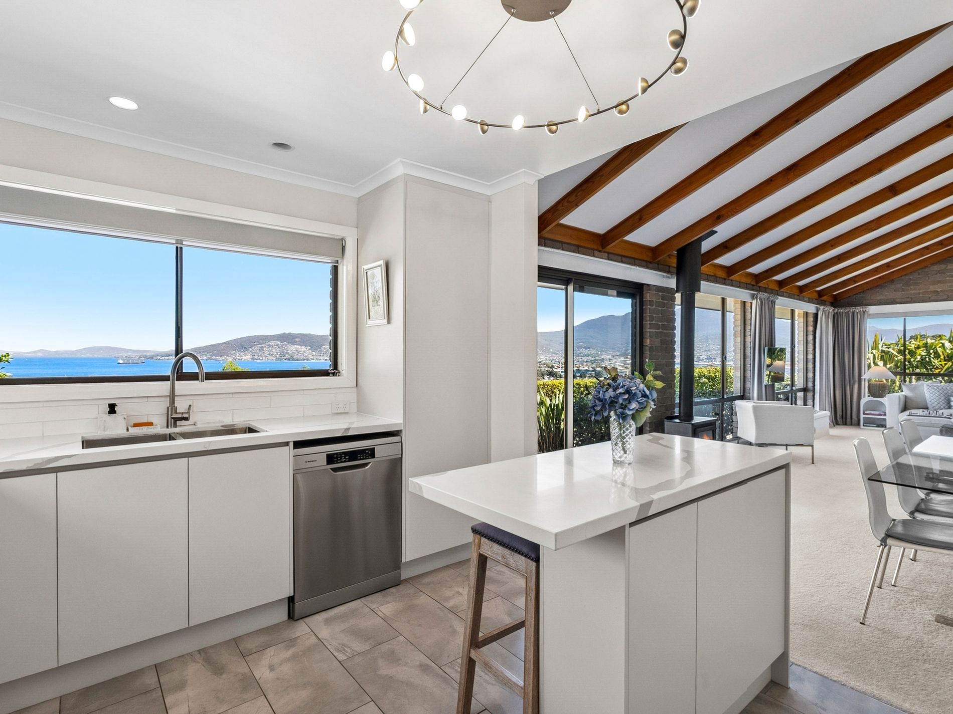 Thoughtfully renovated throughout, the home features a light-filled open plan living, dining, and kitchen area finished to a high standard. This central space has been designed to take full advantage of the incredible, ever-changing water and mountain views from morning through to evening.